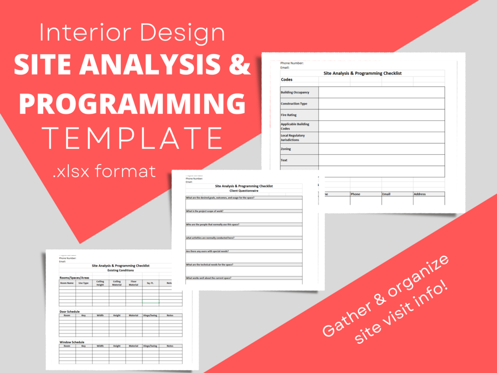 Site Analysis & Programming Checklist Interior Design Site Visit Planner Tracker Template Excel Sheet